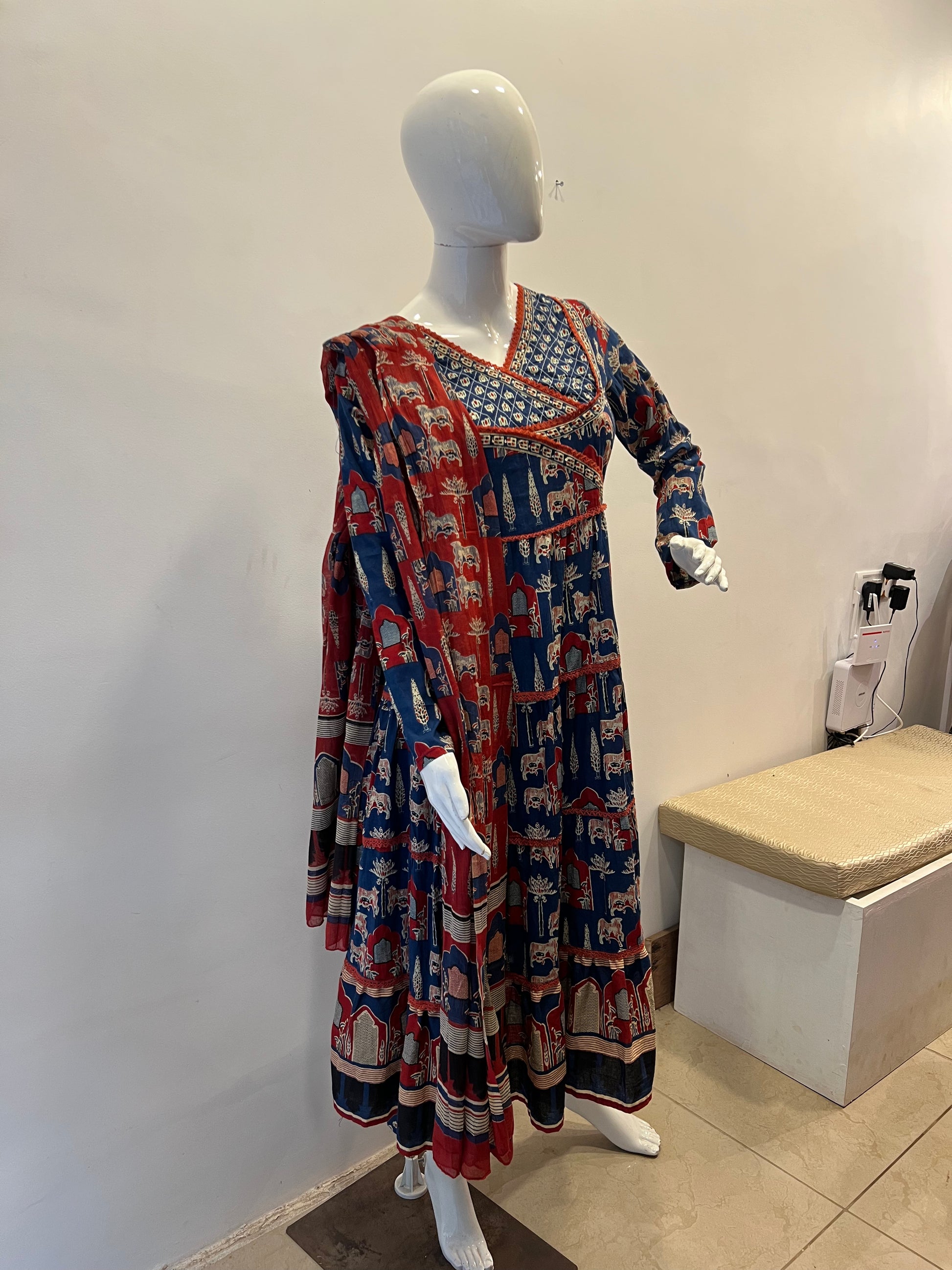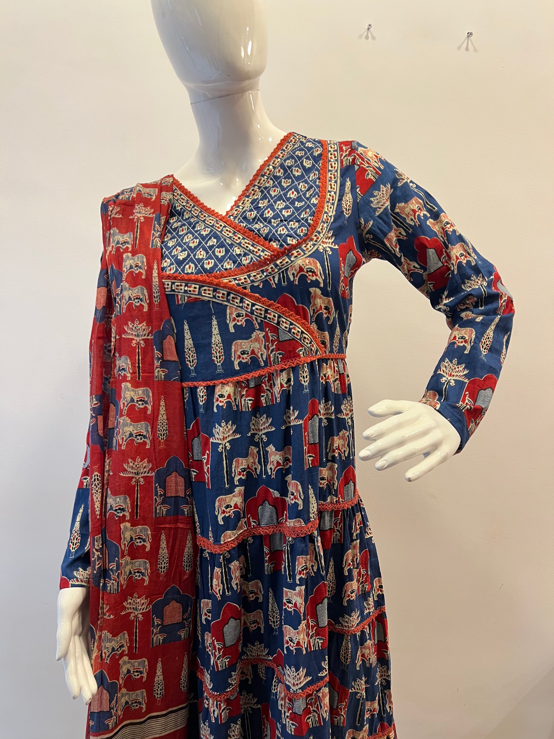 STYLIE GOA Women Printed with Lace Work Pure Cotton Anarkali with Trousers & With Dupatta