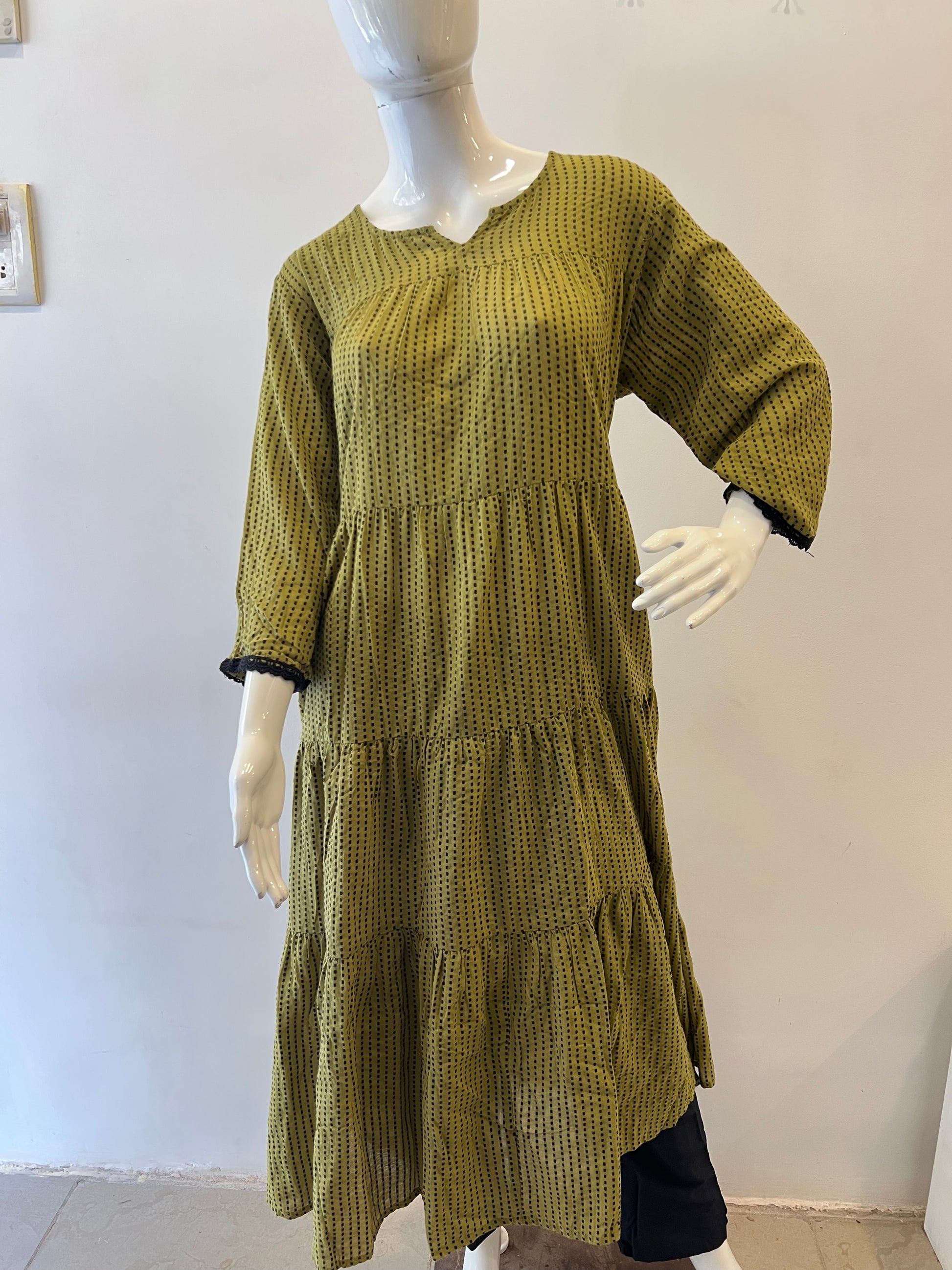 STYLIE GOA Olive Green Floral Embroidered Cotton Kurta With Trousers